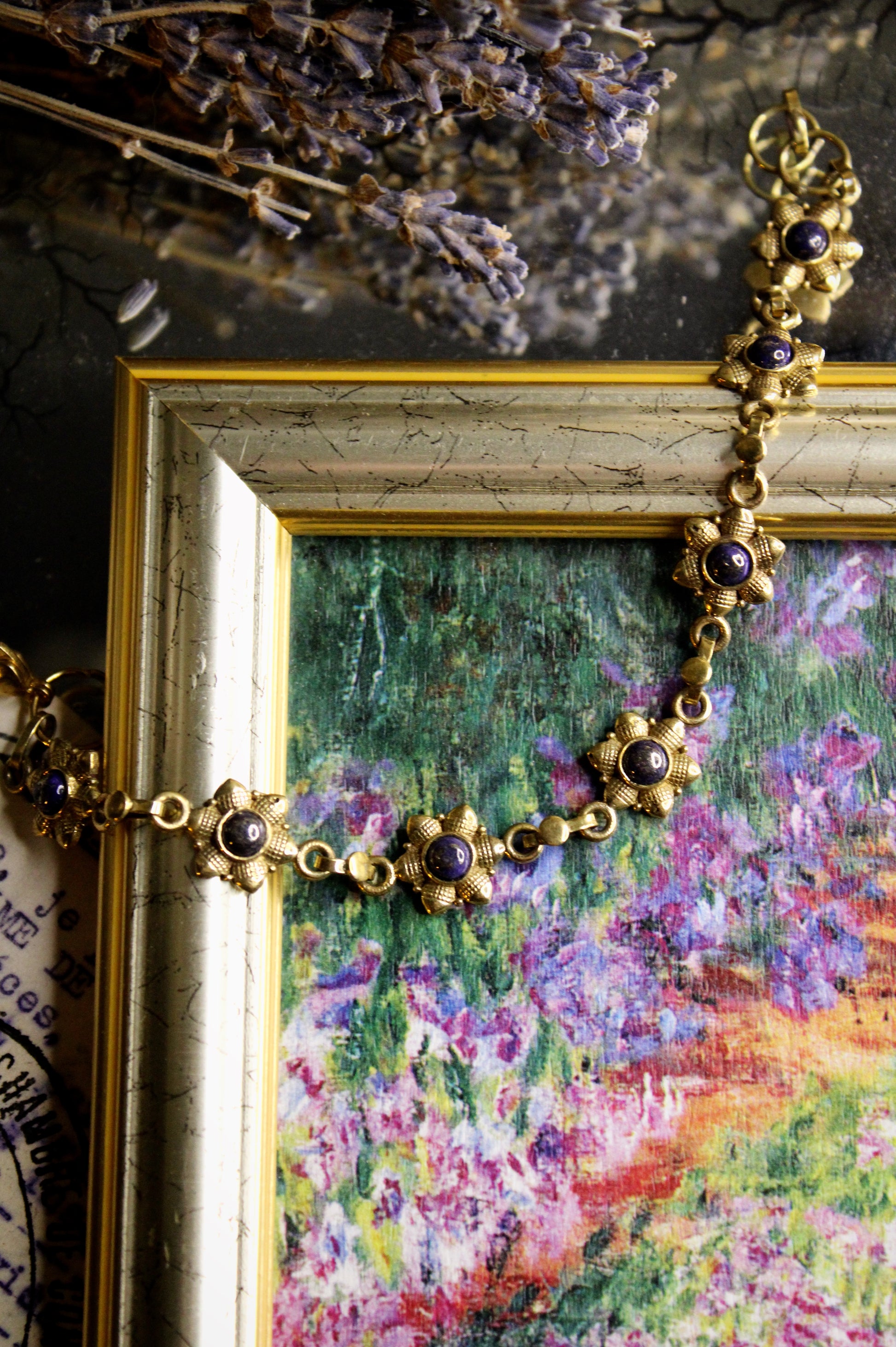 Sur chaque breloque composant le bijou se trouve une perle de pierre. Tous les maillons, anneaux et breloques sont en laiton. Seul le homard permettant de fermer le bracelet est en acier inoxydable. Ils peuvent s’adapter à votre morphologie grâce à cela.