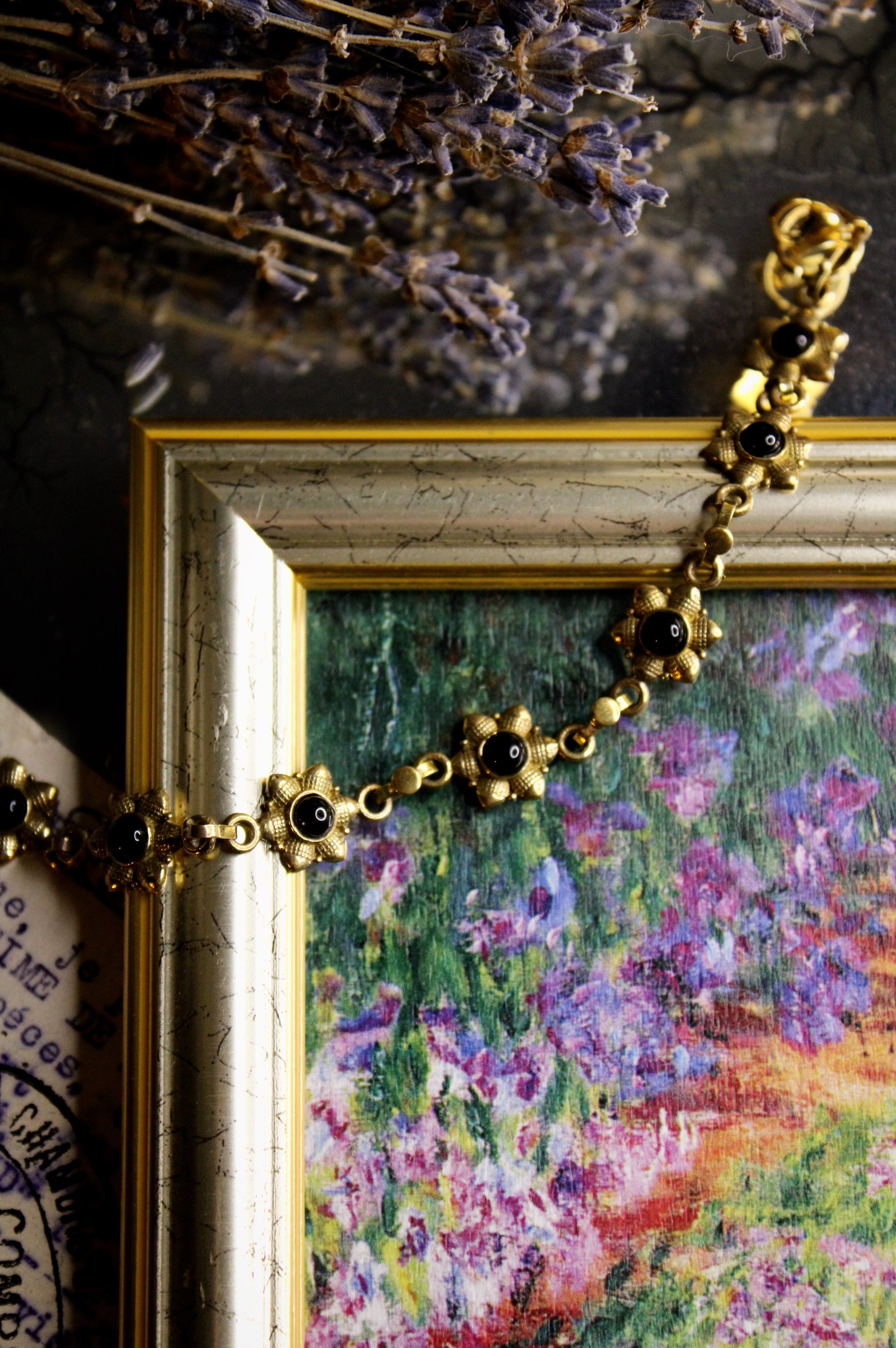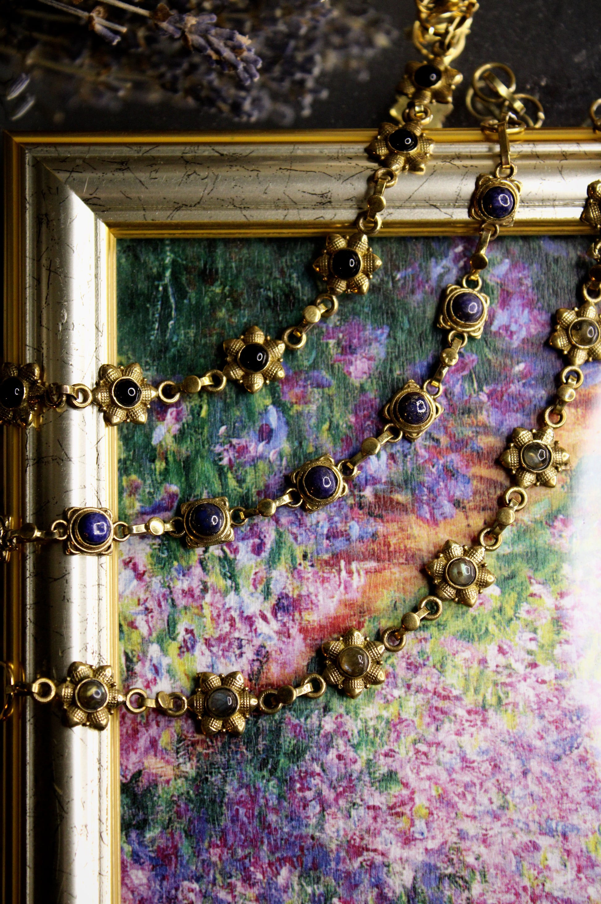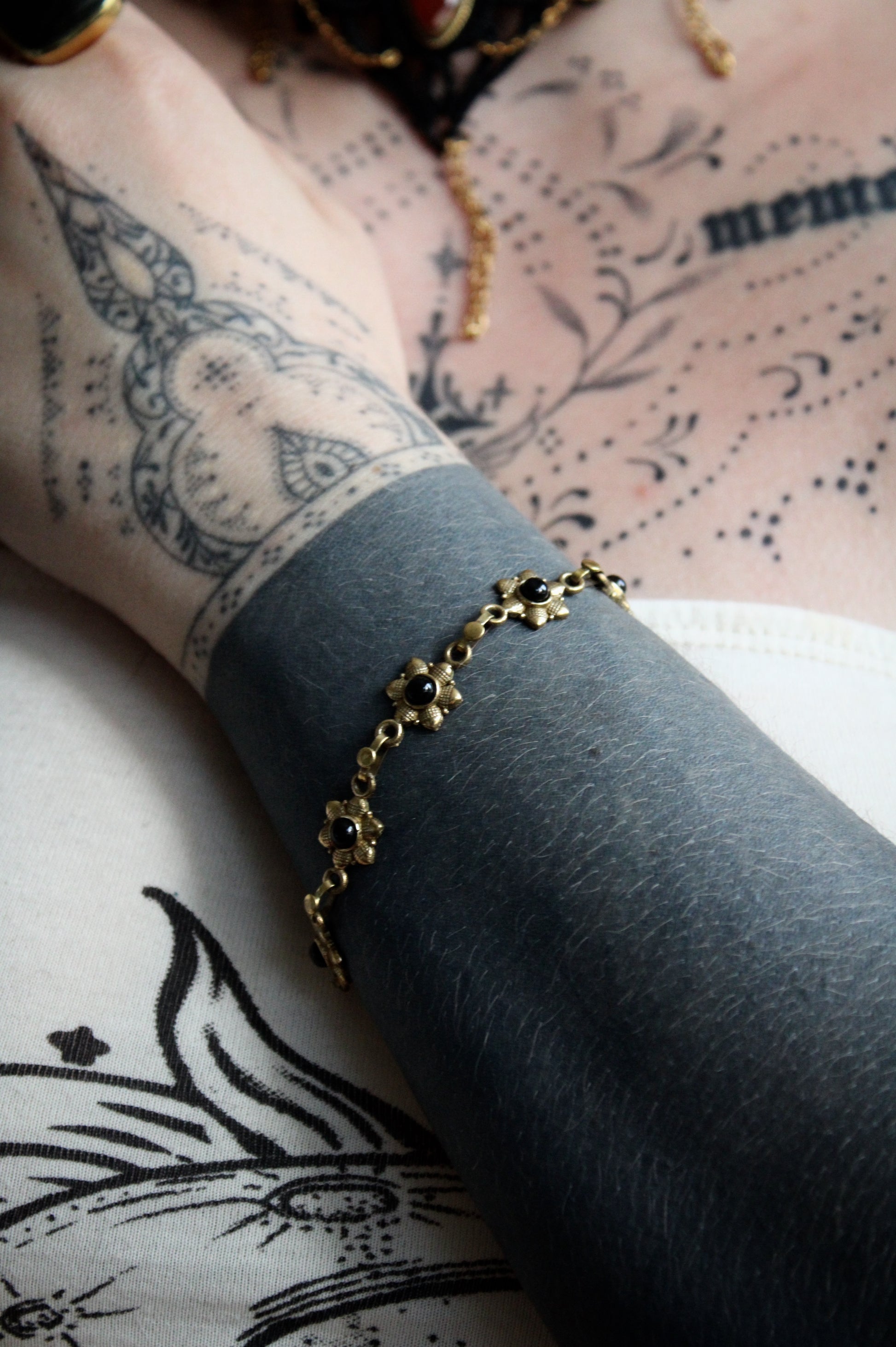Sur chaque breloque composant le bijou se trouve une perle de pierre. Tous les maillons, anneaux et breloques sont en laiton. Seul le homard permettant de fermer le bracelet est en acier inoxydable. Ils peuvent s’adapter à votre morphologie grâce à cela.